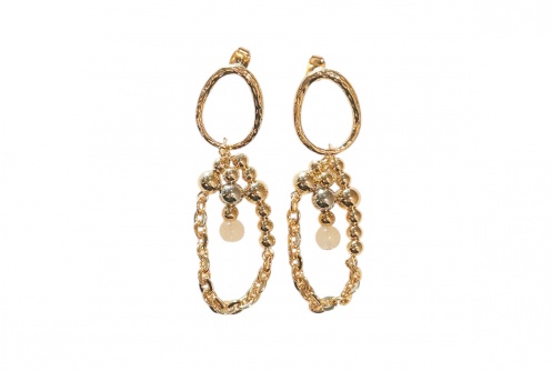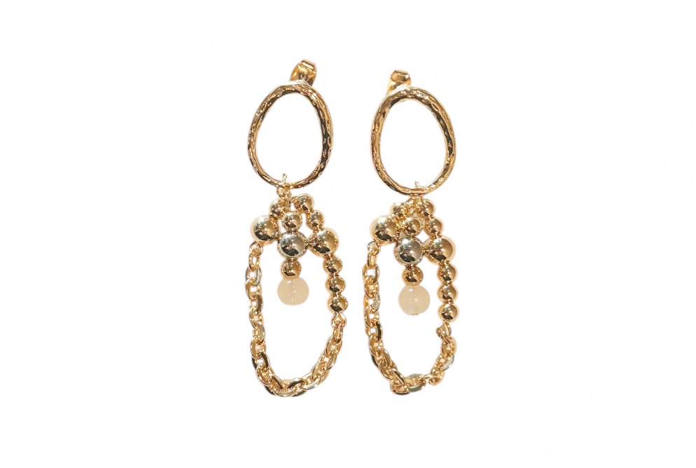 細かいパーツ装飾のサークルデザインピアスです。一見大ぶりに見えますが、繊細な作りで華奢に見せてくれるので普段大ぶりピアスをしない方でも違和感なく楽しめるアイテムです。