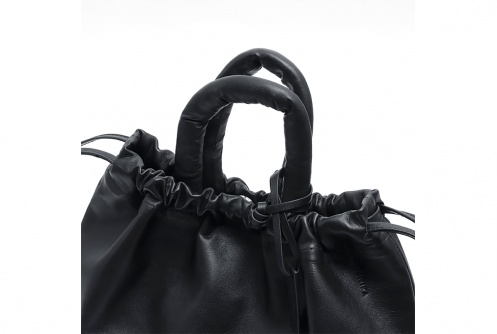 持ち手が目を引く巾着ハンドバッグ。中綿を使用した持ち手は、アクセントにもなり持ちやすさもある機能美を兼ね備えています。コンパクトでありながら、マチが広めなのでたっぷり収納できて長財布もしっかり入るサイズ感です。間口もしっかりと開くので、荷物の出し入れがしやすいのも嬉しいポイント。デイリー使いはもちろん、ちょっとしたお出かけや旅行にもおすすめです。男女問わずユニセックスでお使いいただけます。