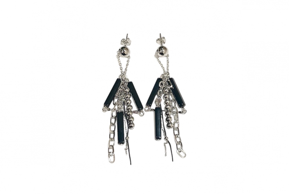 パーツの組み合わせがamplisらしいピアスです。ボリューム感がありつつも軽い付け心地で、縦長シルエットなので顔周りがスッキリした印象を与えてくれます。