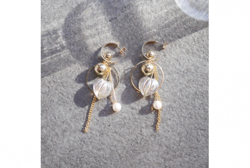 ハートのオーロラカラーが印象的なピアスです。パーツデザインにもこだわり、かわいらしさだけではない個性派デザインで顔周りを彩ります。