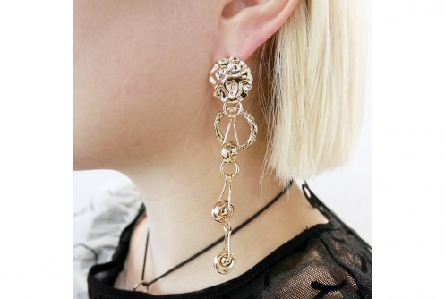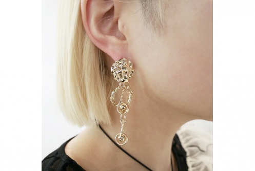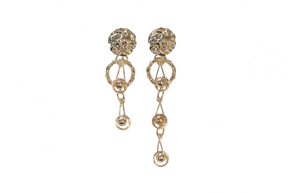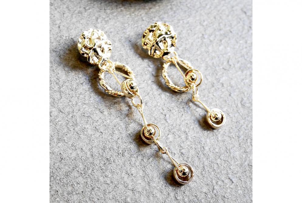 アシンメトリーなデザインのamplisらしいピアスです。国内では珍しいパーツを組み合わせ、個性的な印象に仕上げてくれます。
