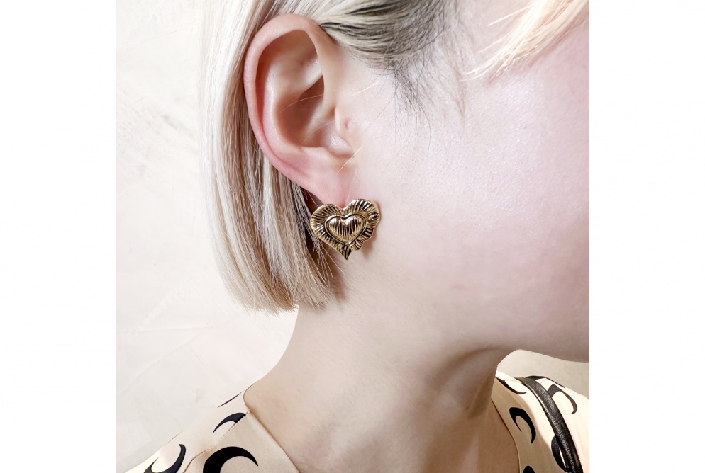 アンティーク調の加工が施された、甘すぎない大人なハートデザインのピアスです。小ぶりでデイリー使いしやすいのもおすすめです。