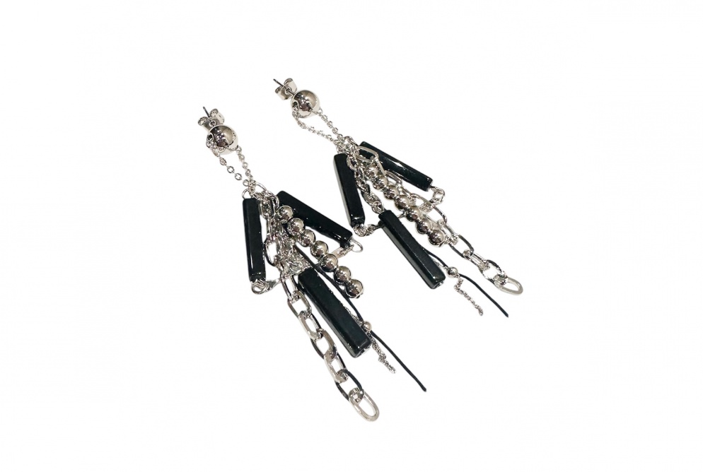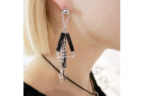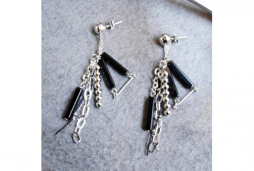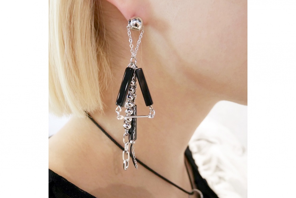 パーツの組み合わせがamplisらしいピアスです。ボリューム感がありつつも軽い付け心地で、縦長シルエットなので顔周りがスッキリした印象を与えてくれます。