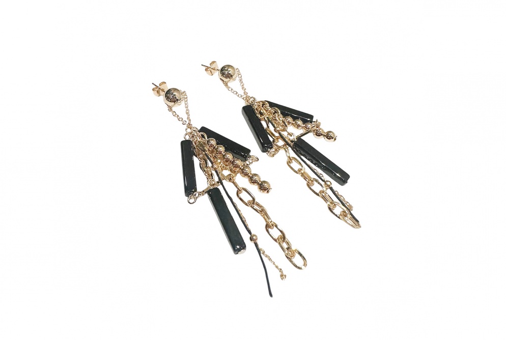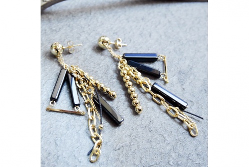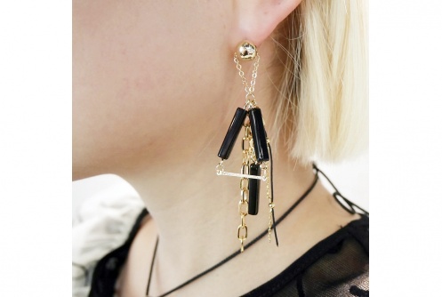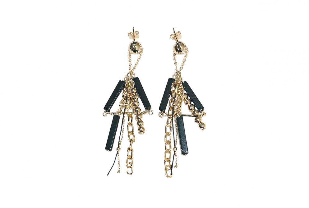 パーツの組み合わせがamplisらしいピアスです。ボリューム感がありつつも軽い付け心地で、縦長シルエットなので顔周りがスッキリした印象を与えてくれます。