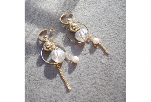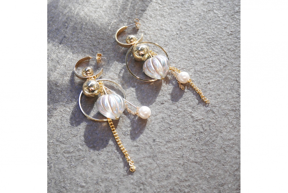 ハートのオーロラカラーが印象的なピアスです。パーツデザインにもこだわり、かわいらしさだけではない個性派デザインで顔周りを彩ります。