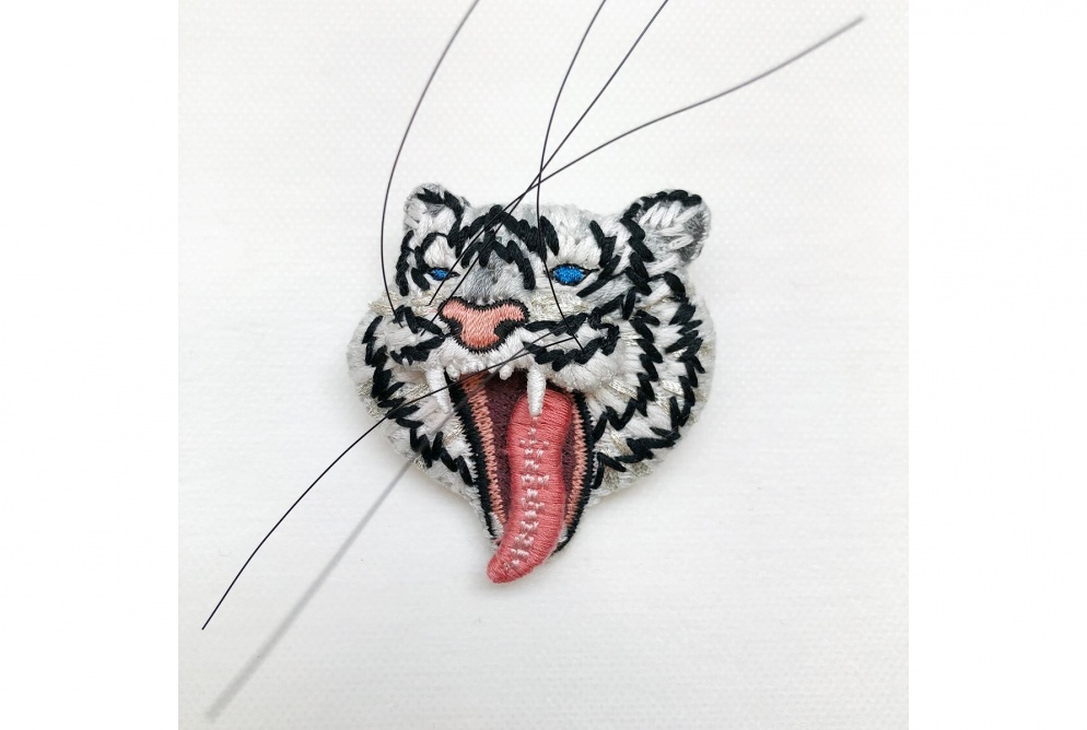 LM (エルム) / ブローチ トラ ホワイト / 立体刺繍アクセサリー タイガー