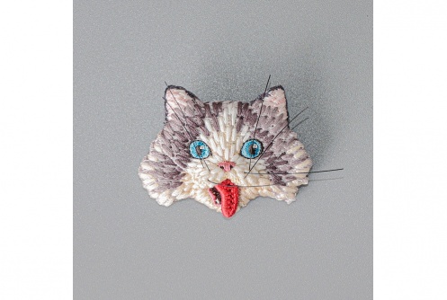 LM (エルム) / ブローチ ネコフェイス グレー / 立体刺繍アクセサリー
